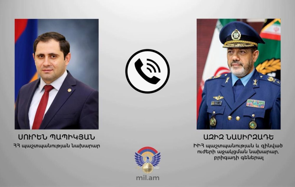 Հուլիսի 9-ին ՀՀ պաշտպանության նախարար Սուրեն Պապիկյանը հեռախոսազրույց է ունեցել ԻԻՀ պաշտպանության և զինված ուժերի աջակցման նախարար, բրիգադի գեներալ Ազիզ Նասիրզադեի հետ։ Այս մասին տեղեկացնում են ՊՆ-ից: