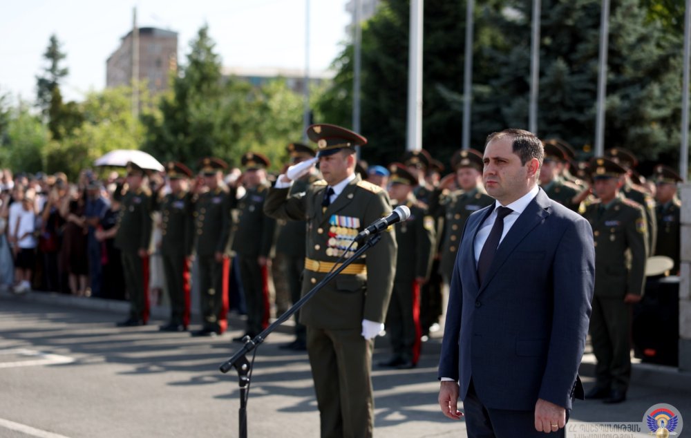 Այնուհետև պաշտպանության նախարար Սուրեն Պապիկյանը, շնորհավորելով շրջանավարտներին ուսումնառությունն ավարտելու առթիվ, նրանց բարի երթ ու անվտանգ ծառայություն է մաղթել։