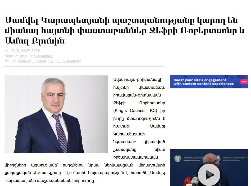 Սամվել Կարապետյանը, եթե ուզենա, Բեյոնսեին ու Ռիհաննային էլ կընդգրկի իր պաշտպանական խմբի մեջ։ Ես ոչ միայն դեմ չեմ, այլ ուրախ կլինեմ։ Թող պաշտպանվի՝ ոնց ուզում է։ Բայց մի հարց։ Եթե սենց լավ պաշտպանվել գիտեք, բա էդ ի՞նչ էր, որ արդեն քանի տարի է՝ ձեր սիրելի Մարգարիտա Սիմոնյանն ու Սոլովյովը, Զատուլինն ու Սեմյոն Բաղդասարովը, Սկաբեևան ու Տոլստոյը ձեր ֆինանսավորած ռուսական հեռուստաալիքներով ամեն օր հայհոյում են հայ ժողովրդին՝ զրպարտում, թույն ու ցեխ են արձակում ու ատելություն տարածում։ Ո՞ւր էր ձեր թասիբը, որտե՞ղ են այդ նույն փաստաբանները, երբ հայ ժողովրդին են թիրախավորում։