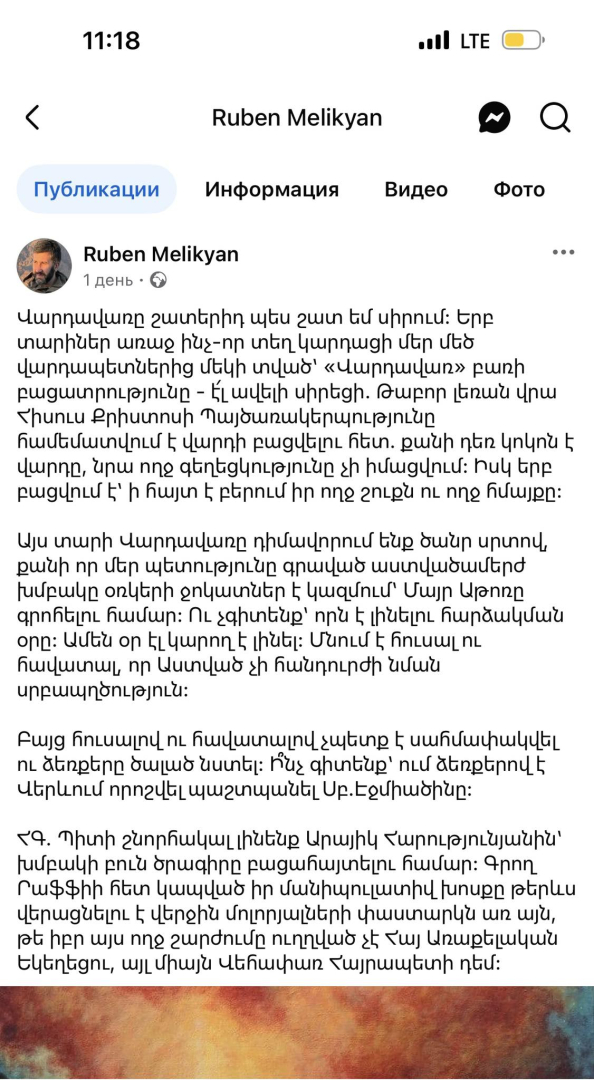 Ու սա հիմա Եգիպտոսից ինչ-որ հայրենասիրական, պաթոսախեղդ գրառումներ է կատարում՝ պետությունը պաշտպանելու և որոշ հոգևորականների խունտային սատար կանգնելու վերաբերյալ: