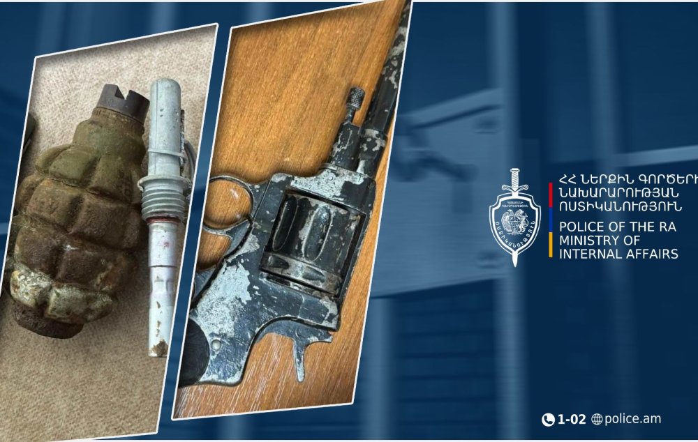ՆԳՆ ոստիկանությունից տեղեկացնում են, որ հուլիսի 31-ին Պարեկային ծառայության Գեղարքունիքի մարզի գումարտակի 1-ին վաշտի հրամանատարին է դիմել Սևան քաղաքի մի բնակիչ: Նա հայտնել է, որ պապական տան գոմի տանիքը մաքրելիս գտել են պարկի մեջ լցված զենք-զինամթերք, որը պատկանում է հանգուցյալ պապին։