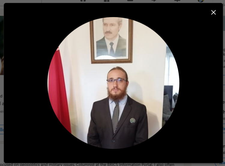 Այս լրագրողի Linkedin-ի էջում կարդում ենք․ «Ես հաճախ աշխարհաքաղաքական հարցերով մեկնաբանություններ եմ տալիս «Սպուտնիկ Ռադիոյին»»։ «Ռադիո Սպուտնիկը», նկատենք, «Ռոսիա սեգոդնյա» մեդիախմբի մաս է, ռուսական քարոզչական աղբյուրներից մեկը։