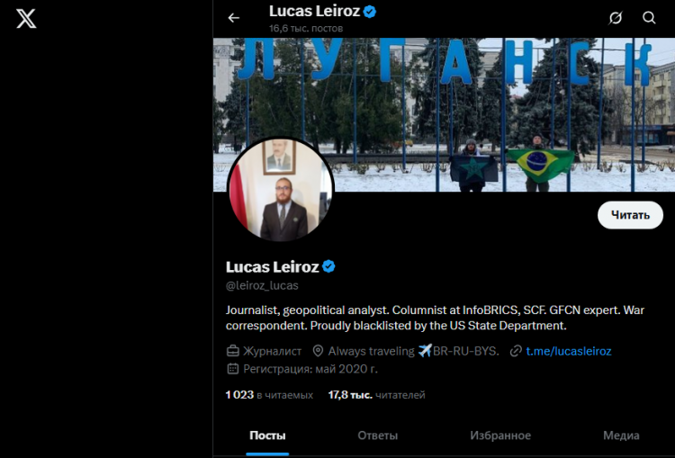 Լուկասի X-ի էջը ավելի խոսուն է և ընդգծում է նրա պրոռուսական դիրքորոշումը․ նրա էջի ետնանկարում Լուգանսկն է, որին տիրանալու համար Ռուսաստանի զինված ուժերը տարիներ շարունակ պայքարում են, իսկ նրա գլխավոր լուսանկարում Բելառուսի նախագահ Ալեքսանդր Լուկաշենկոն է։
