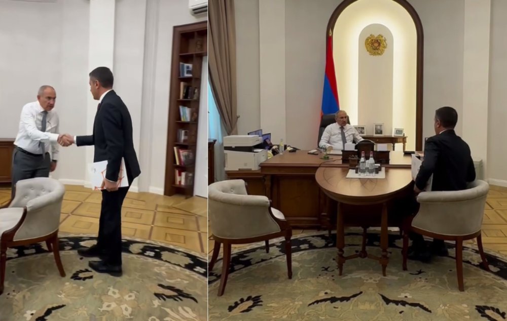 ՀՀ վարչապետ Նիկոլ Փաշինանն աշխատանքային հանդիպում է ունեցել Կադաստրի կոմիտեի ղեկավար Սուրեն Թովմասյանի հետ: Այդ մասին տեսանյութը հրապարակվել է վարչապետի Ֆեյսբուքի էջում: