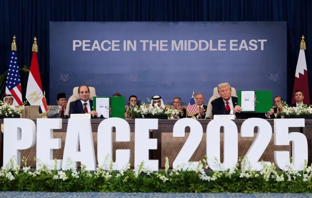 Եգիպտոսի նախագահ Աբդել Ֆաթթահ Ալ-Սիսին, Կատարի էմիր շեյխ Թամիմ բին Համադ Ալ Թանին, ԱՄՆ նախագահ Դոնալդ Թրամփը և Թուրքիայի նախագահ Ռեջեփ Թայիփ Էրդողանը հոկտեմբերի 13-ին Շարմ էլ Շեյխում կայացած խաղաղության գագաթնաժողովին ստորագրել են Գազայի հատվածում հրադադարի վերջնական հաստատման շուրջ համաձայնագիր։