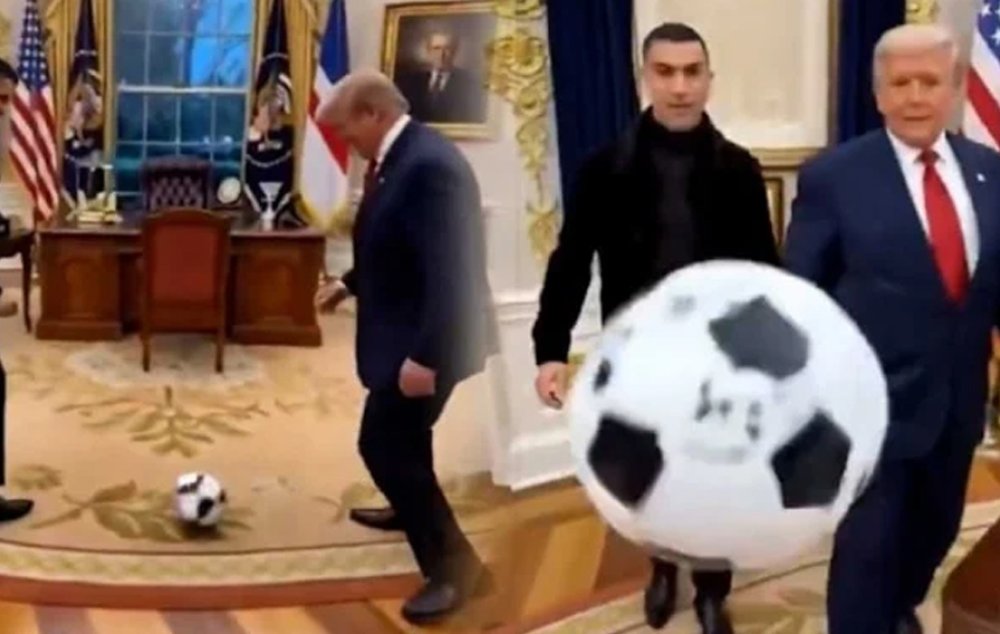 ԱՄՆ նախագահ Դոնալդ Թրամփը TruthSocial սոցիալական ցանցում հրապարակել է արհեստական բանականության միջոցով ստեղծված տեսանյութ, որտեղ ինքը ֆուտբոլ է խաղում հայտնի ֆուտբոլիստ Կրիշտիանու Ռոնալդուի հետ Օվալաձև աշխատասենյակում։