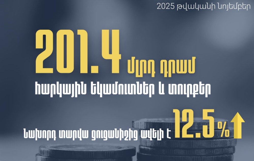 «2025 թվականի նոյեմբերին հարկ վճարողների հետ ապահովել ենք 201.4 մլրդ դրամ հարկեր և տուրքեր, ինչը նախորդ տարվա նույն ամսվա համեմատ ավելի է 22.3 մլրդ դրամով կամ 12.5 %֊ով։