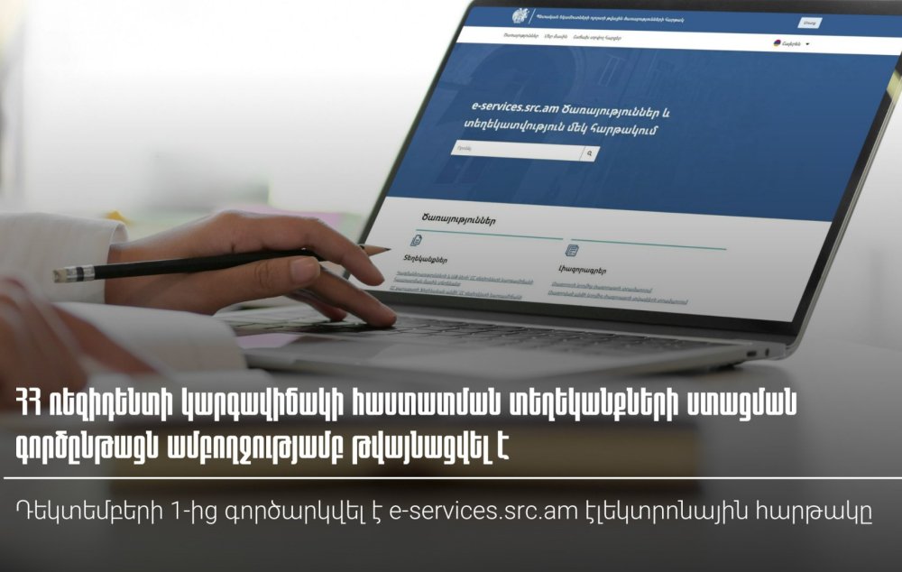 Պետական եկամուտների կոմիտեից տեղեկացնում են, որ 2025 թ․ դեկտեմբերի 1-ից գործարկվել է ՀՀ ռեզիդենտի կարգավիճակի հաստատման մասին տեղեկանքների տրամադրման էլեկտրոնային հարթակը։ Այն հասանելի է ՀՀ ՊԵԿ պաշտոնական կայքէջի «ՀՀ ռեզիդենտի կարգավիճակի հաստատման մասին տեղեկանքներ» բաժնում։