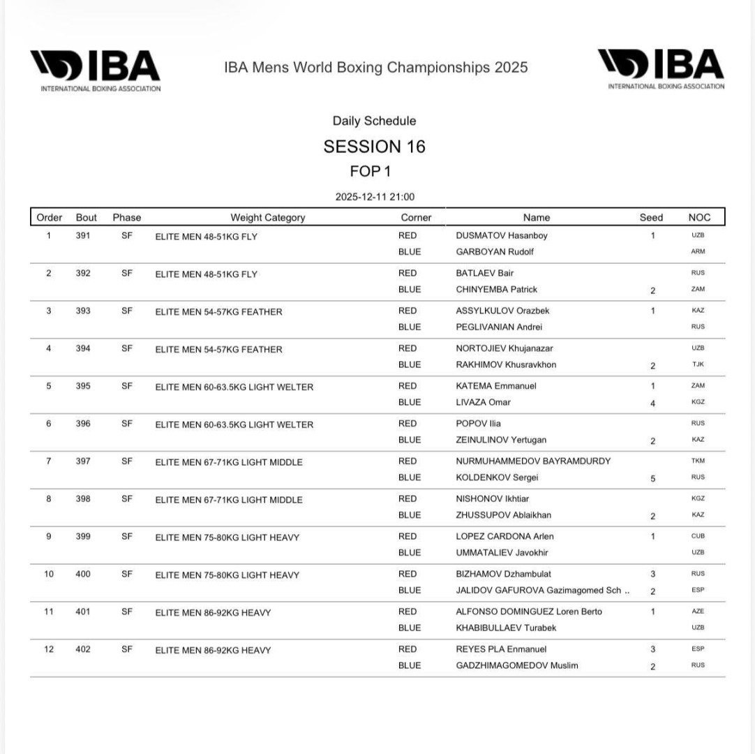 Այսօր ժամը 16։00-ին՝ առաջին մրցահերթում ռինգ դուրս կգան Արթուր Բազեյանը, Հովհաննես Բաչկովը, Ռաֆայել Հովհաննիսյանն ու Դավիթ Չալոյանը, իսկ 21։00-ին՝ Ռուդոլֆ Գարբոյանը։