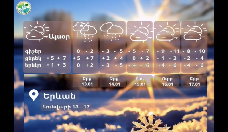 Երևանում հունվարի 12-ի ցերեկը, 14-ի ցերեկը, 15-17-ը սպասվում է առանց տեղումների եղանակ։