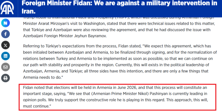 Հայաստանյան մեդիա դաշտը, ինչպես նաև քաղաքական՝ հիմնականում ընդդիմադիր շրջանակները տարածում են ապատեղեկատվություն, թե իբր Ֆիդանը հայտարարել է, որ առաջիկա ընտրություններում Թուրքիան աջակցում է Փաշինյանին։