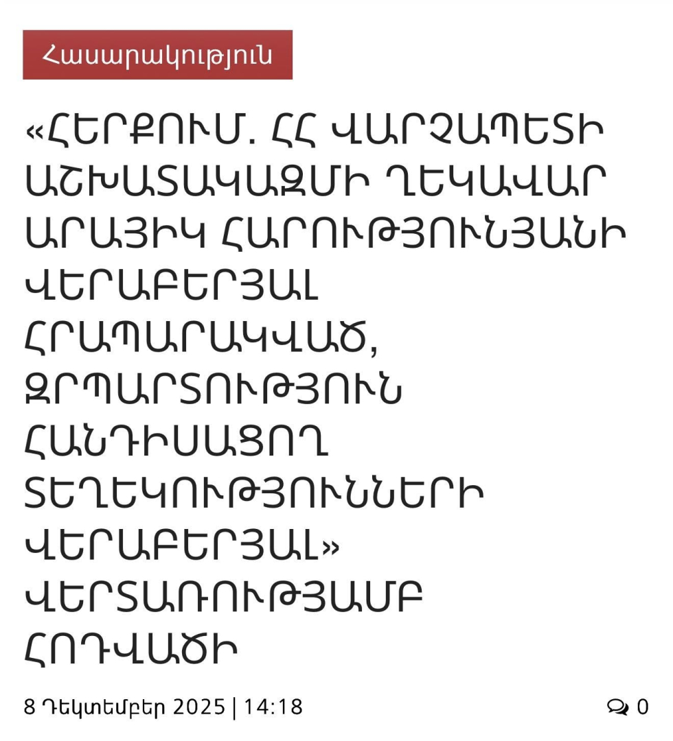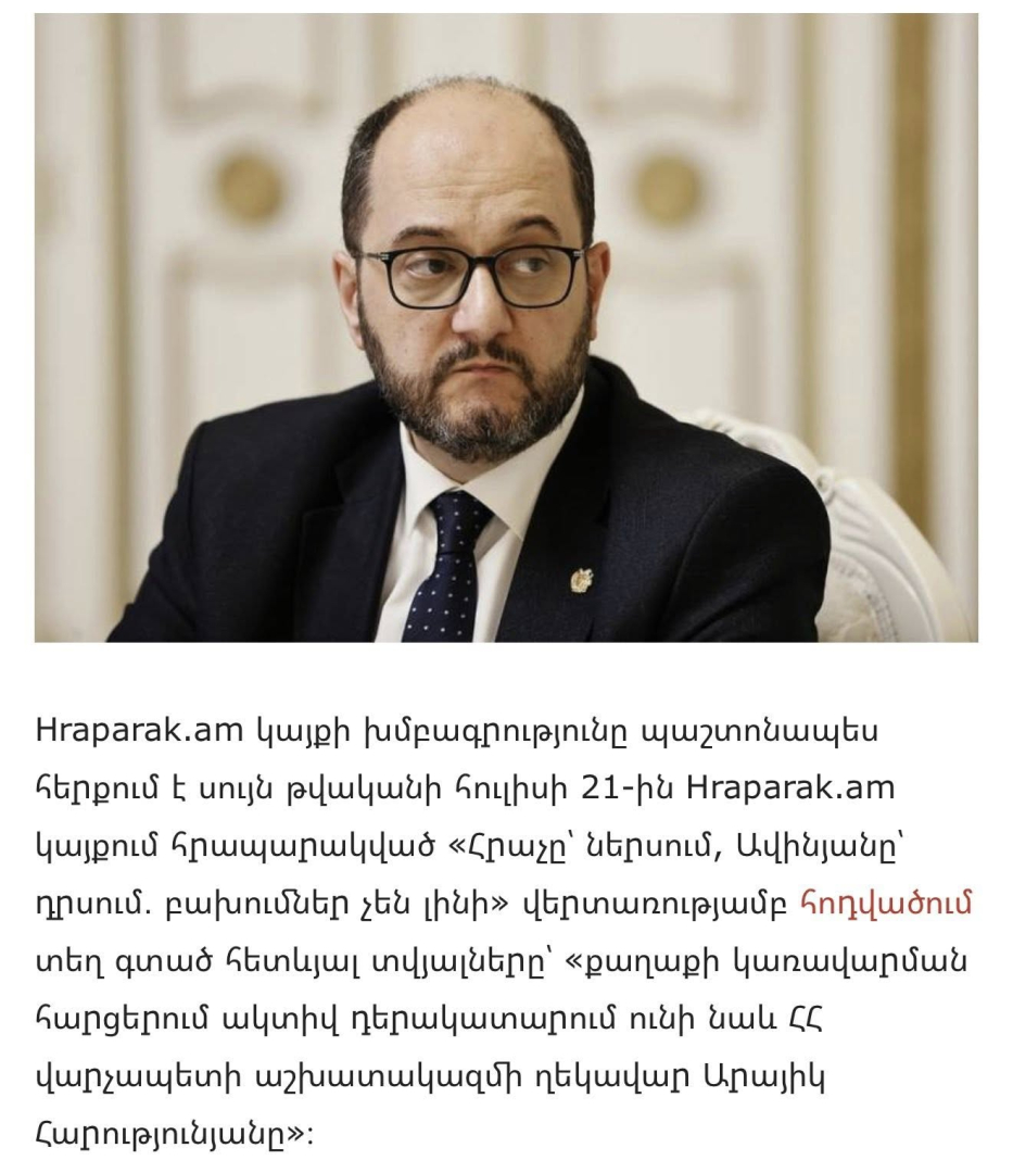 ՀՀ վարչապետի աշխատակազմի ղեկավար Արայիկ Հարությունյանը գրել է.