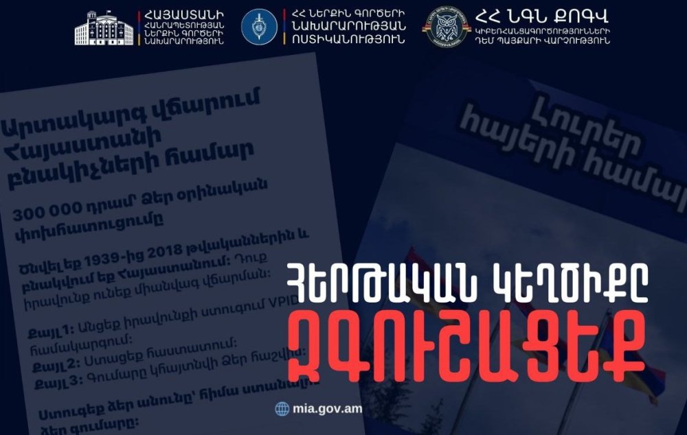 - ՀՀ պետական և սոցիալական մարմինները սոցիալական ցանցերի միջոցով չեն հավաքագրում քաղաքացիների բանկային և անձնական տվյալներ։