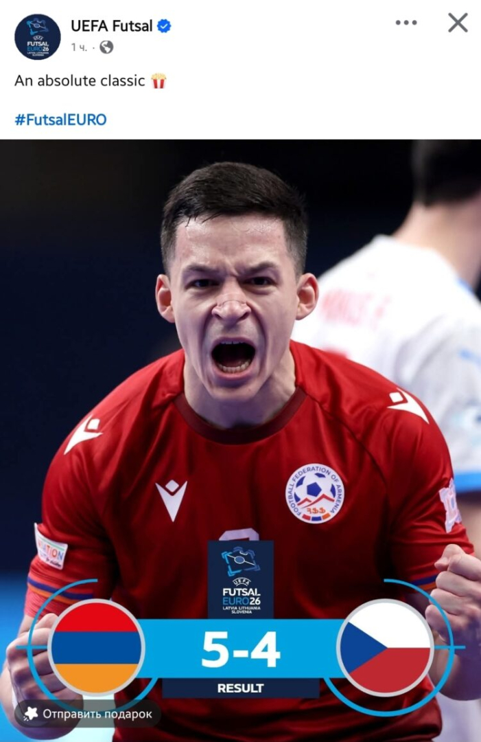 ԵՎՐՈ-2026-ի խմբային փուլի Հայաստան-Չեխիա հանդիպումը, որն ավարտվել է մեր ընտրանու կամային հաղթանակով (5:4), եվրոպական ֆուտբոլային գլխավոր կառույցի ուշադրությանն է արժանացել։