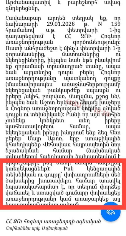Խեղաթյուրելով պաշտպանության նախարարի հրամանը նա փորձ է անում դուրս բերել հոգևորականներին զինված ուժերից: