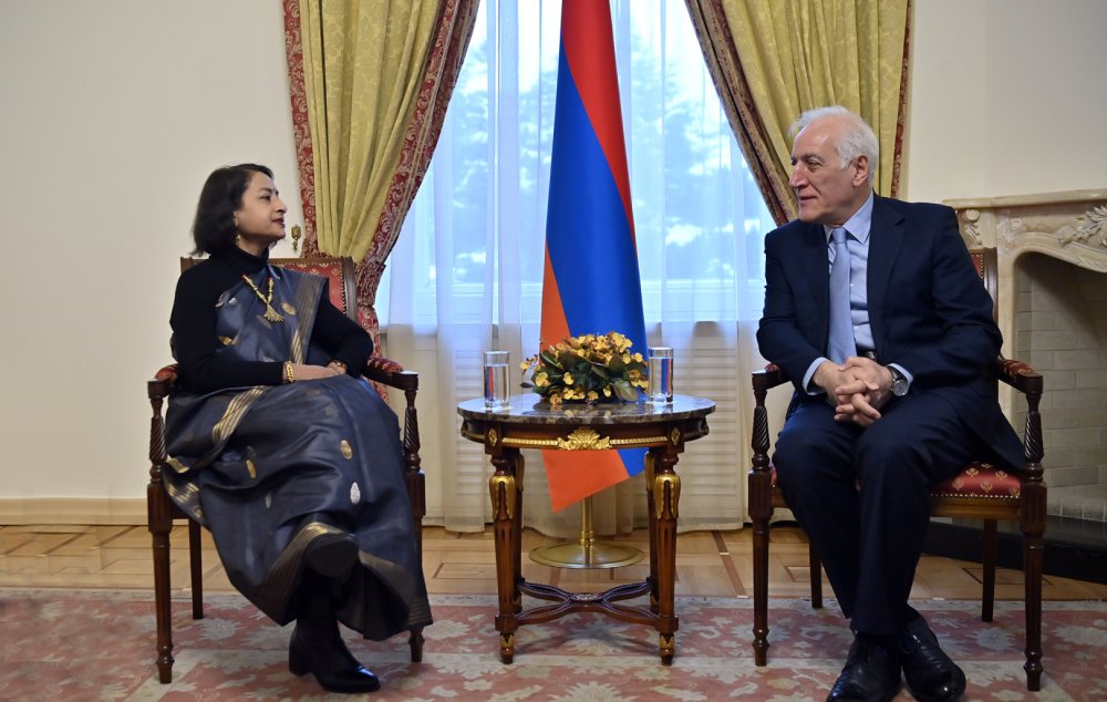 Հանրապետության նախագահ Վահագն Խաչատուրյանն ընդունել է Հայաստանում Հնդկաստանի արտակարգ և լիազոր դեսպան Նիլակշի Սահա Սինհային՝ Հնդկաստանի Ազգային տոնի՝ Հանրապետության օրվա առթիվ։