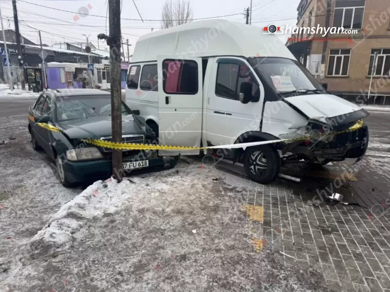 Հունվարի 31-ին՝ ժամը 09։00-ի սահմաններում, Գյումրի քաղաքի Տերյան և Շահումյան փողոցների խաչմերուկում բախվել են Շիրակի մարզի բնակիչներ 50-ամյա Սուրեն Ա․-ի վարած, Գյումրի-Առափի երթուղին սպասարկող «Գազել» մակնիշի և 37-ամյա Կարեն Ա․-ի վարած «Mercedes» մակնիշի ավտոմեքենաները։