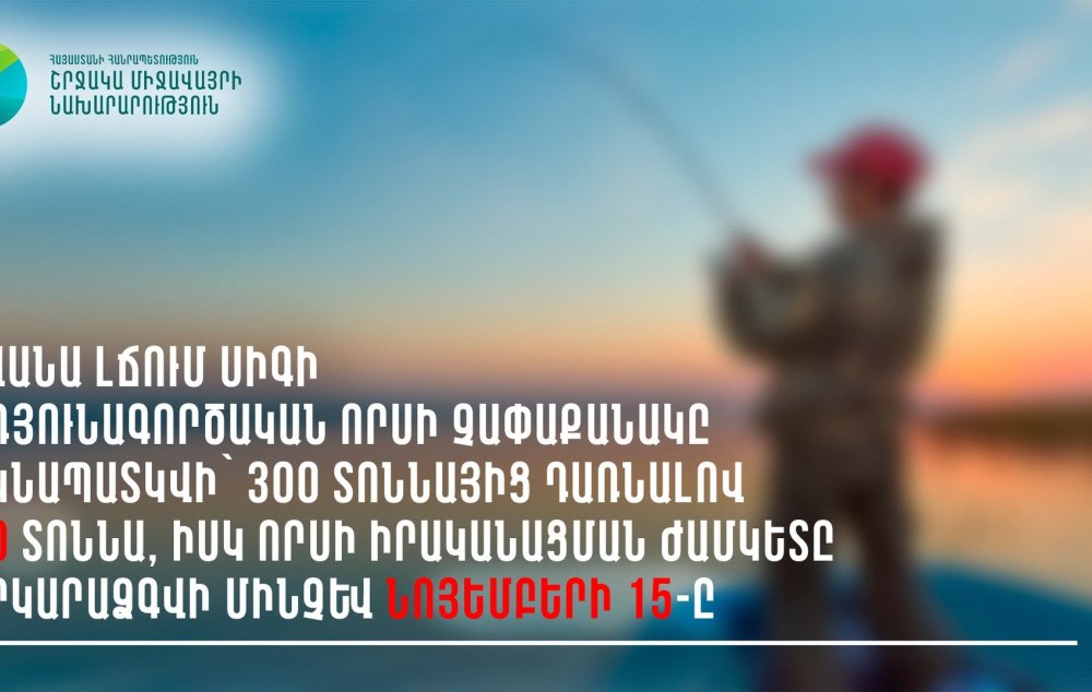 Սևանա լճում սիգի արդյունագործական որսի չափաքանակը կրկնապատկվի՝ 300 տոննայից դառնալով 600 տոննա, իսկ որսի իրականացման ժամկետը կերկարաձգվի մինչև նոյեմբերի 15-ը