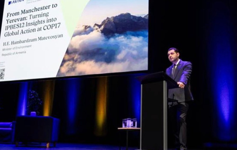 Նախարար Համբարձում Մաթևոսյանը Մանչեսթերում մասնակցել է Կենսաբազմազանության և էկոհամակարգային ծառայությունների միջկառավարական գիտաքաղաքական հարթակի (IPBES) 12-րդ նստաշրջանի շրջանակում անցկացված «Բիզնեսի և ֆինանսների օր» միջոցառմանը և հանդես եկել ելույթով՝ ներկայացնելով կենսաբազմազանության պահպանման ու էկոհամակարգային ծառայությունների արժևորման ոլորտում նախարարության առաջնահերթությունները և համագործակցության հնարավորությունները։