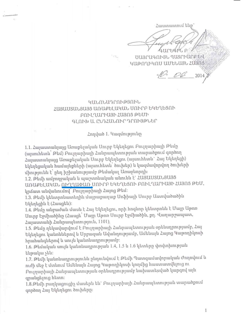 Եվս մեկ ապացույց Վեհափառի ապաեկեղեցական գործունեության: Սա ավելի վտանգավոր եզրույթ է, որ Բուլղարիայի թեմը ներկայացվում է որպես Ուղղափառ եկեղեցու թեմ։ Այս մասին հայտնում է Հայ Առաքելական եկեղեցու բարենորոգման էջը։