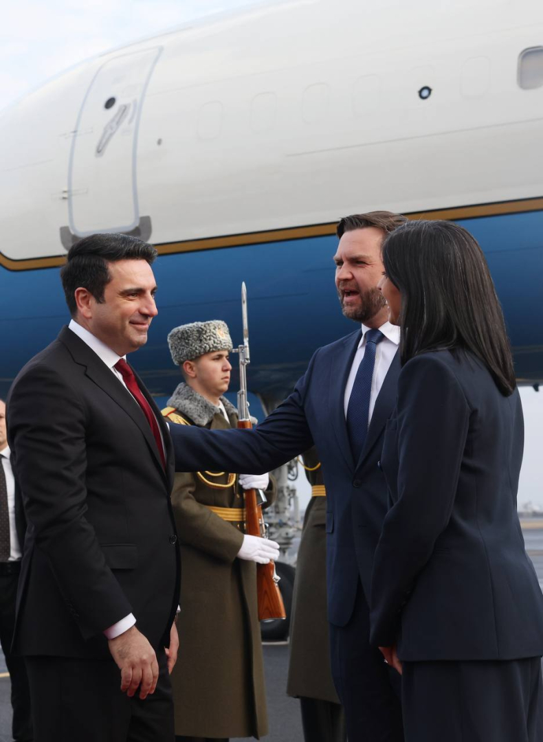 Նշենք, որ Ամերիկայի Միացյալ Նահանգների փոխնախագահ Ջեյ Դի Վենսը ժամանել է Հայաստան, վերջինիս դիմավորել ԱԺ նախագահ Ալեն Սիմոնյանը։