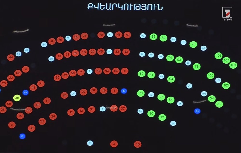 Արդյունքում ԱԺ հանձնաժողովի նիստին բացասական եզրակացություն ստացած հայտարարության նախագծին կողմ քվեարկեց 21 պատգամավոր, դեմ՝ 52, ձեռնպահ՝ 1: Նախագիծը չընդունվեց:
