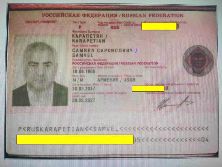 Համացանցում հրապարակվել է Տաշիր Սամոյի ռուսական անձնագրի լուսանկարը։