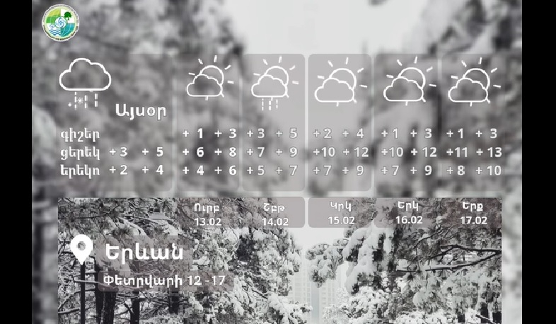 Օդի ջերմաստիճանը փետրվարի 13-17-ը աստիճանաբար կբարձրանա 5-8, Լոռիում, Տավուշում և Սյունիքում՝ 8-10 աստիճանով։