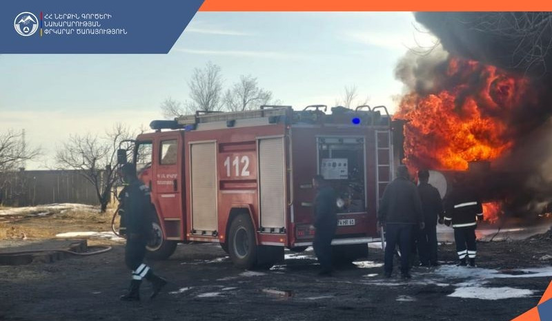 Նախնական տվյալներով այրվում են պահեստային բաքերը և մեկ բեռնատար ավտոմեքենա։ Իրականացվում է հրդեհաշիջում։