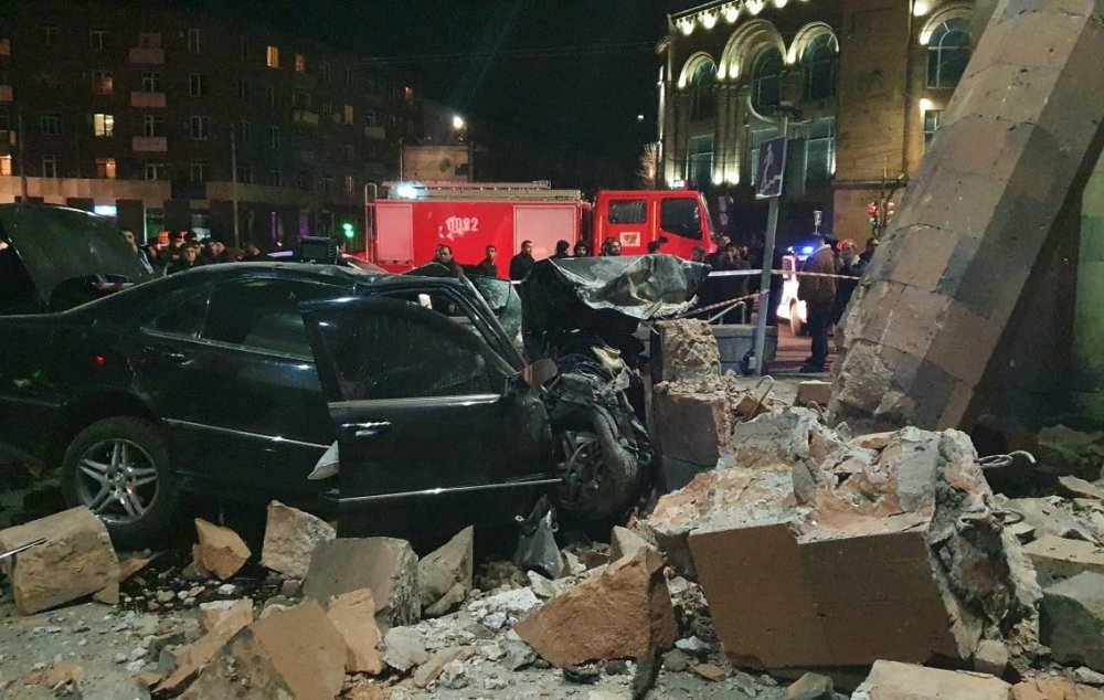 Պարզվել է, որ Արշակունյաց պողոտայի թիվ 38 հասցեի մոտակայքում «Mercedes S500» մակնիշի ավտոմեքենան (վարորդ՝ Մ․ Դ․, ծնված 1994 թ.) դուրս է եկել ճանապարհի երթևեկելի հատվածից, բախվել գետնանցման երկու հենապատերին, այնուհետև «Հայրենիք» կինոթատրոնի քարե սյուներից մեկին։ Բախման հետևանքով հենապատերը (մասամբ՝ մոտ 4 քմ) և քարե սյունը (մոտ 6 մ բարձրությամբ) փլուզվել են: