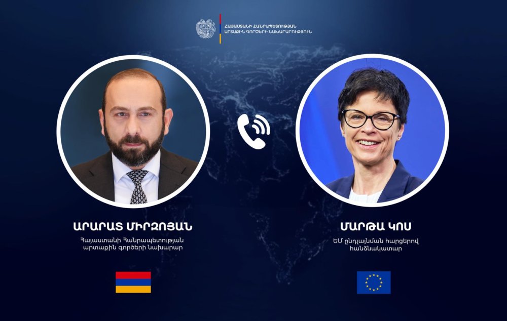 Հայաստանի Հանրապետության ԱԳ նախարար Արարատ Միրզոյանը հեռախոսազրույց է ունեցել ունեցել ԵՄ ընդլայնման հարցերով հանձնակատար Մարթա Կոսի հետ։