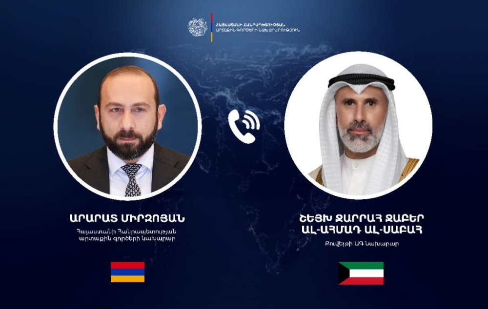 Հայաստանի Հանրապետության ԱԳ նախարար Արարատ Միրզոյանը հեռախոսազրույց է ունեցել Քուվեյթի ԱԳ նախարար Շեյխ Ջարրահ Ջաբեր Ալ-Ահմադ Ալ-Սաբահի հետ: Այս մասին տեղեկացնում են ԱԳՆ-ից։