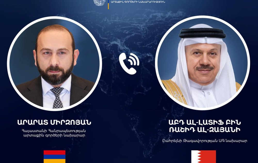 ՀՀ ԱԳ նախարար Արարատ Միրզոյանը մարտի 5-ին հեռախոսազրույց է ունեցել Բահրեյնի Թագավորության ԱԳ նախարար Աբդ Ալ-Լատիֆ բին Ռաշիդ Ալ-Զայանիի հետ: Այս մասին տեղեկացնում են ՀՀ ԱԳՆ-ից:
