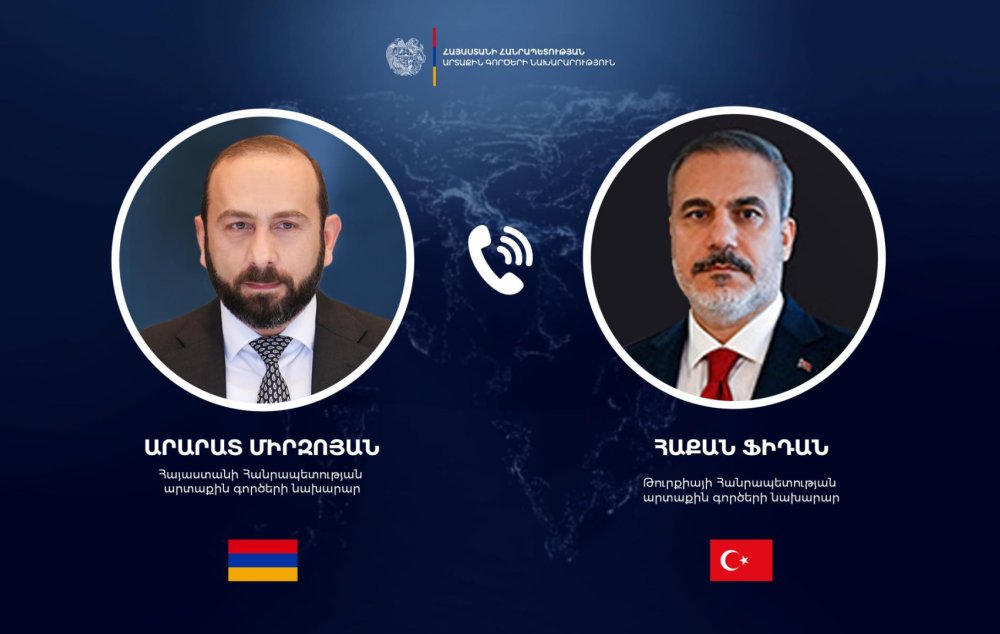 Հայաստանի Հանրապետության ԱԳ նախարար Արարատ Միրզոյանը հեռախոսազրույց է ունեցել Թուրքիայի Հանրապետության ԱԳ նախարար Հաքան Ֆիդանի հետ: Այս մասին հայտնում են ՀՀ ԱԳՆ-ից։
