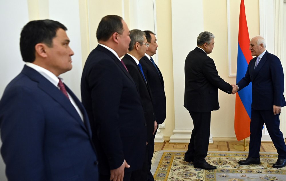 Հանրապետության նախագահ Վահագն Խաչատուրյանն ընդունել է պաշտոնական այցով Հայաստանում գտնվող Ղազախստանի արտաքին գործերի նախարար Երմեկ Կոշերբաևի գլխավորած պատվիրակությանը։
