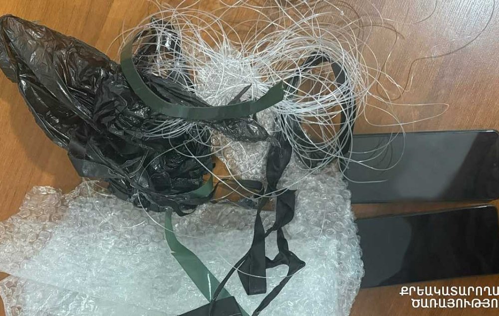 Տարածքի զննության արդյունքում հայտնաբերվել է կպչուն ժապավենով փաթեթավորված պոլիէթիլենային տոպրակ, որում առկա էր 2 բջջային հեռախոս: