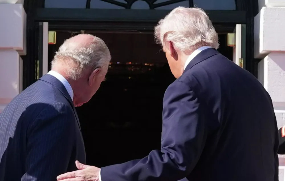 ի նշան ողջույնի թփթփացրել է Մեծ Բրիտանիայի թագավոր Չարլզ III-ի ուսին՝ խախտելով թագավորական