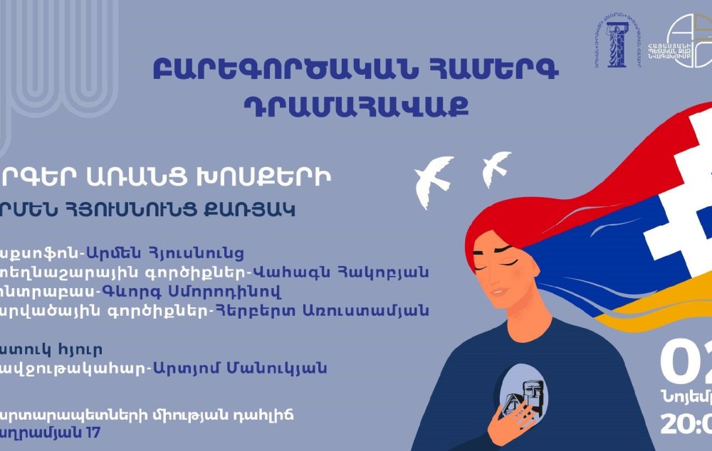 Նոյեմբերի 2-ին`ժամը 20:00-ին, Ճարտարապետների միության շենքի դահլիճում կկայանա է Արմեն Հյուսնունց Քառյակի «Երգեր առանց խոսքերի» բարեգործական համերգը:
