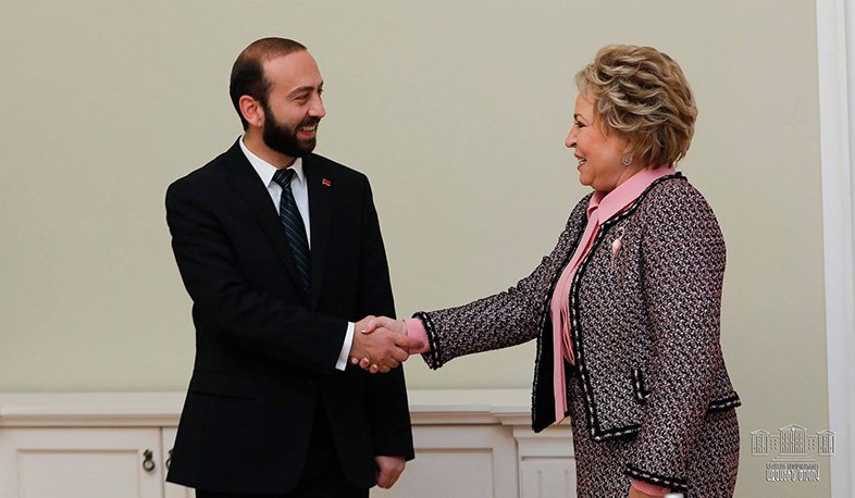 Ռուսաստանի Դաշնության Դաշնային խորհրդի նախագահ Վալենտինա Մատվիենկոն և Հայաստանի Հանրապետության Ազգային ժողովի նախագահ Արարատ Միրզոյանը հեռախոսազրույցում քննարկել են Հայաստանում տեղի ունեցած վերջին քաղաքական իրադարձությունները: Այս մասին ասված է Դաշնային խորհրդի մամուլի ծառայության տարածած հաղորդագրությունում: