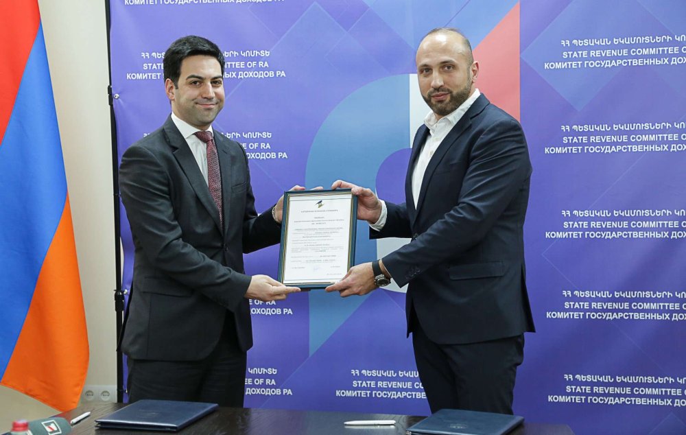 Պետական եկամուտների կոմիտեի նախագահ Ռուստամ Բադասյանը «Երևանի կոնյակի գործարան» փակ բաժնետիրական ընկերությանը հանձնել է Եվրասիական տնտեսական միության լիազորված տնտեսական օպերատորների ռեեստրում ընդգրկվելու վերաբերյալ 1-ին տիպի վկայական։