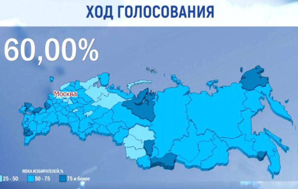 ՌԴ նախագահական ընտրություններին մասնակցությունը հասել է 60 %-ի: Այս մասին հայտնել է ՌԴ ԿԸՀ-ն։
