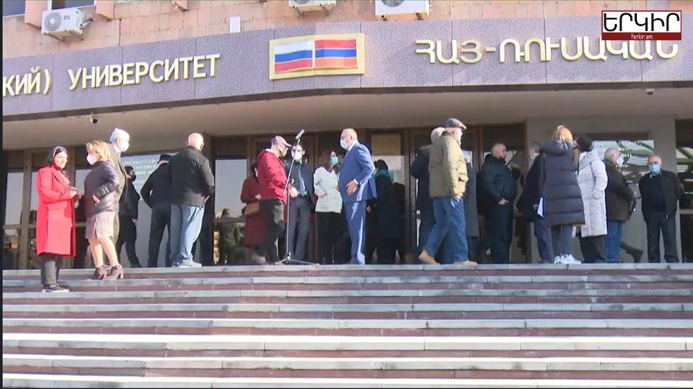 Հայ-ռուսական համալսարանի ռեկտոր Արմեն Դարբինյանի հայտնի հայտարարությունից հետո, որով նա ԱԱԾ-ին և Նիկոլ Փաշինյանին մեղադրում էր իրեն հրաժարական պարտադրելու մեջ, համալսարանի պրոֆեսորադասախոսական, ադմինիստրատիվ կազմի, ուսանողների և շրջանավարտների մասնակցությամբ այսօր հավաք է կազմակերպել համալսարանի հիմնական մասնաշենքի առջև։ Հավաքի մասին երեկ նախապես հայտարարել էր համալսարանի մամուլի խոսնակ Հենրիխ Մարգարյանը, ով Civic.am-ի հետ զրույցում նշեց, որ հավաքը կազմակերպվել է ի պաշտպանություն համալսարանի ռեկտոր Արմեն Դարբինյանի, իսկ նպատակը ռեկտորի հանդեպ գործող վարչակազմի կողմից իրականացվող ճնշումների նկատմամբ իրենց անհամաձայնությունն արտահայտելն էր։