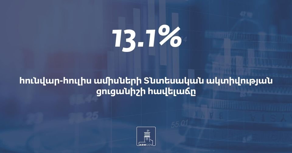 Ընթացիկ տարվա հունվար-հուլիս ամիսներին նախորդ տարվա նույն ժամանակահատվածի համեմատ Հայաստանում Տնտեսական ակտիվության ցուցանիշի (ՏԱՑ) հավելաճը կազմել է 13.1%: Այս մասին հայտնում են ՀՀ կառավարությունից։