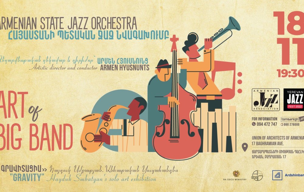 Նոյեմբերի 18-ին` ժամը 19:30-ին, Ճարտարապետների միության դահլիճում՝ «Երևան Ջազ» միջազգային փառատոնի շրջանակում Հայաստանի պետական ջազ նվագախումբը կներկայացնի «ART OF BIG BAND» համերգային ծրագիրը: