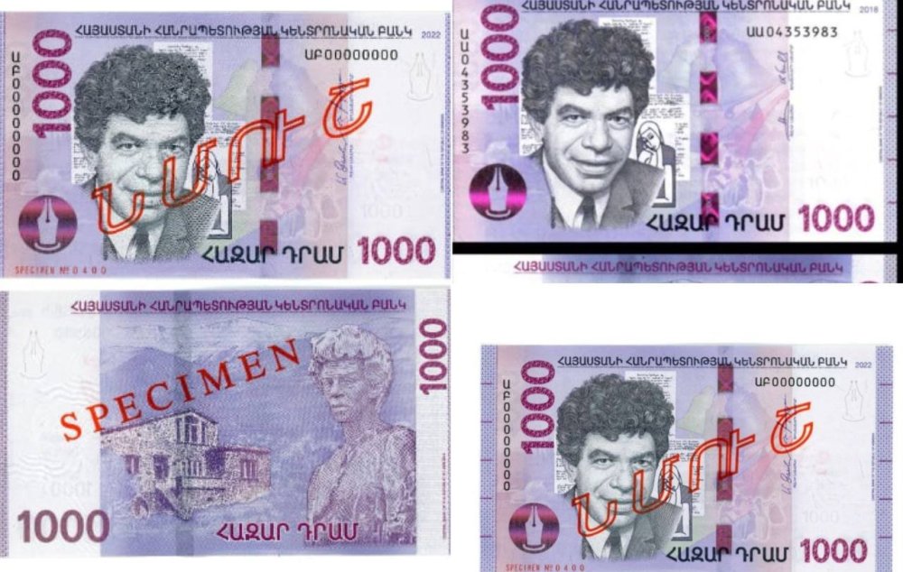 Ստորև ներկայացվում է հազար դրամ անվանական արժեքով 2022 թ. թողարկման Հայաստանի Հանրապետության թղթադրամի նմուշը և վերջինիս նկարագրությունը: