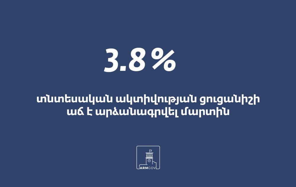 2021թ.-ի մարտին տնտեսական ակտիվության ցուցանիշը նախորդ տարվա նույն ժամանակահատվածի համեմատ կազմել է 3.8%։