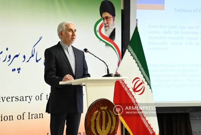 Դեսպանը նախ շնորհակալություն հայտնեց հյուրերին Իսլամական հեղափոխության հաղթանակի 44-րդ տարեդարձի առթիվ կազմակերպված պաշտոնական ընդունելությանը մասնակցելու համար, նշելով, որ 44 տարի առաջ Իմամ Խոմեյնի գլխավորությամբ տեղի ունեցավ 20-րդ դարի ամենաժողովրդական հեղափոխություններից մեկը, որի արդյունքում իրանական քաղաքական դաշտից դուրս մղվեց ավտորիտար և կախյալ միապետական վարչակարգը և «Անկախություն, ազատություն, Իսլամական Հանրապետություն» կարգախոսով ստեղծվեց կրոնական, ժողովրդավարական վարչակարգ։ Ըստ դեսպանի՝ այս տարիների ընթացքում Իրանը մեծ հաջողություններ է գրանցել ամենատարբեր ոլորտներում՝ սկսած գիտությունից, վերջացրած տնտեսությունից։