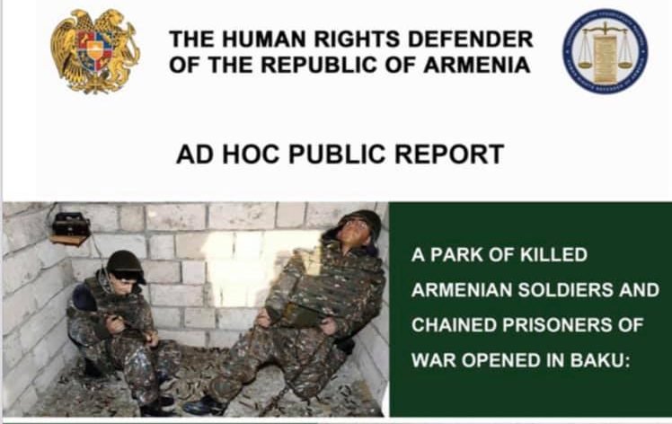 ՀՀ մարդու իրավունքների պաշտպանը նոր արտահերթ զեկույց է հրապարակել, այս մասին գրում է ՄԻՊ Արման Թաթոյանը ֆեյբուքյան իր էջում․ «Սպանված հայ զինվորների և շղթայված գերիների պուրակ Բաքվում. մարդկային տառապանքների թանգարան և ռասիզմի խթանում» Այսպես եմ վերնագրել ՀՀ մարդու իրավունքների պաշտպանի այս նոր արտահերթ զեկույցը (անգլերենով):