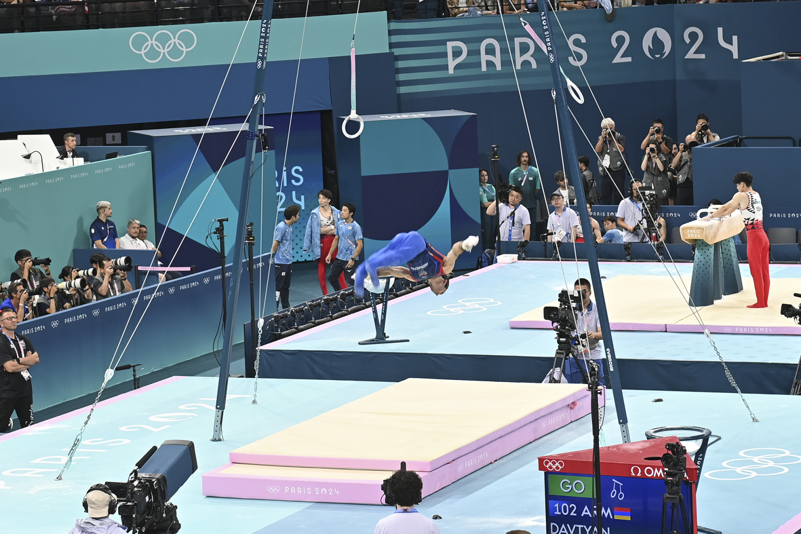Աշխատանքային այցով Փարիզում գտնվող նախագահ Վահագն Խաչատուրյանը ներկա է գտնվել մարմնամարզիկ Արթուր Դավթյանի մրցելույթին։