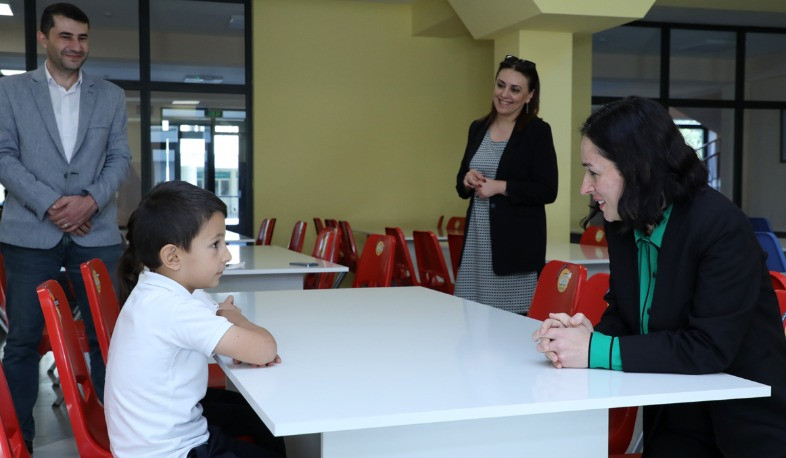 Երևանի Ալեքսանդր Բլոկի անվան թիվ 122 հիմնական դպրոցի տնօրեն Կարինե Մխիթարյանը նախարարին տեղեկացրել է, որ դպրոցն ունի 850 աշակերտ, որոնցից 334-ը տարական դասարանների երեխաներ են: Նրա տեղեկացմամբ՝ ճաշարանը պետք է գործի 2 հերթափոխով, որպեսզի հասցնի սպասարկել բոլորին: Նախարարը հետաքրքրվել է՝ որքանով է գույքը մարդաչափական առումներով հարմարեցված երեխաներին և դպրոցի ճաշարաններին հատկացված տարածքներին, ինչ աշխատանքներ դեռ պետք է իրականացվեն: